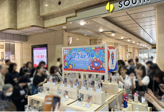 10月1日から大阪駅の旅立ちの広場でイベント「世界のミャクミャク展」が行われています。