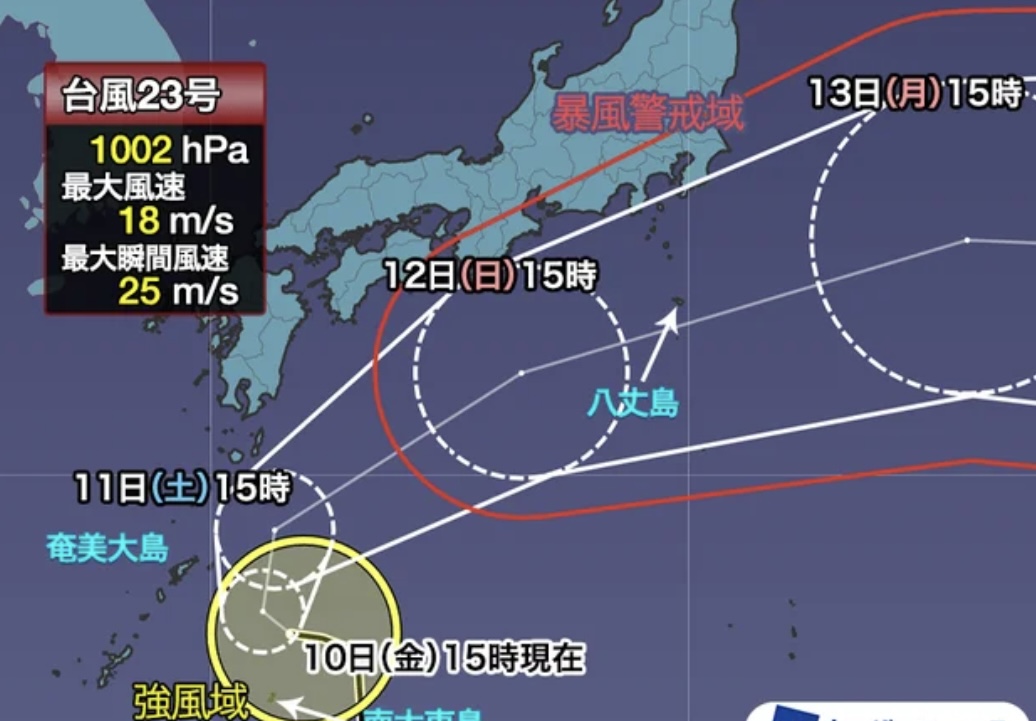 台風23号が発生していて、現在沖縄から九州方面へ北上してきています。関西圏にあまり影響はない予報ですが、台風の予想円はかなり近いところを通るようです(´-`).。oO