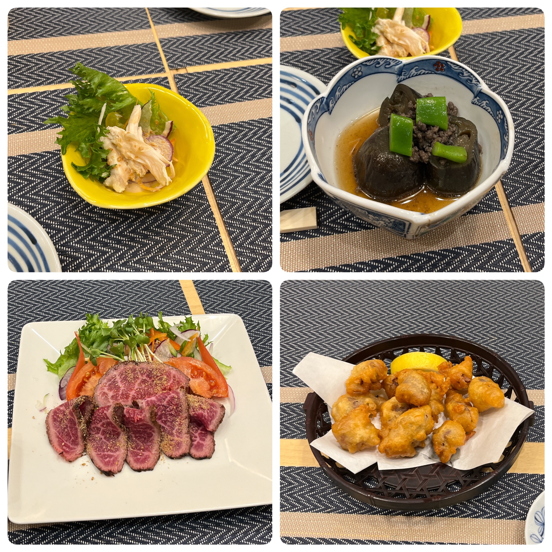 旬のお造り、ナスのしぐれ煮、牛たたきサラダ添え、ズリの唐揚げ、湯豆腐など、どれも丁寧に作られた逸品でした^_^