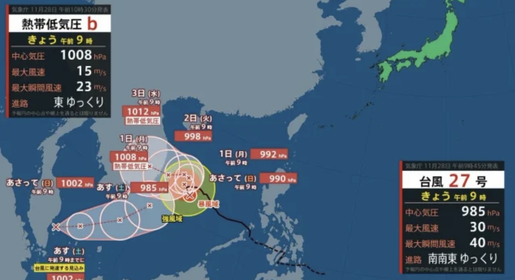 これで11月に四つめの台風となり、28号は2019年以来の6年ぶりとなるそうです^ ^こんな時期にダブル台風もかなり稀なことのようです…(;´Д`A