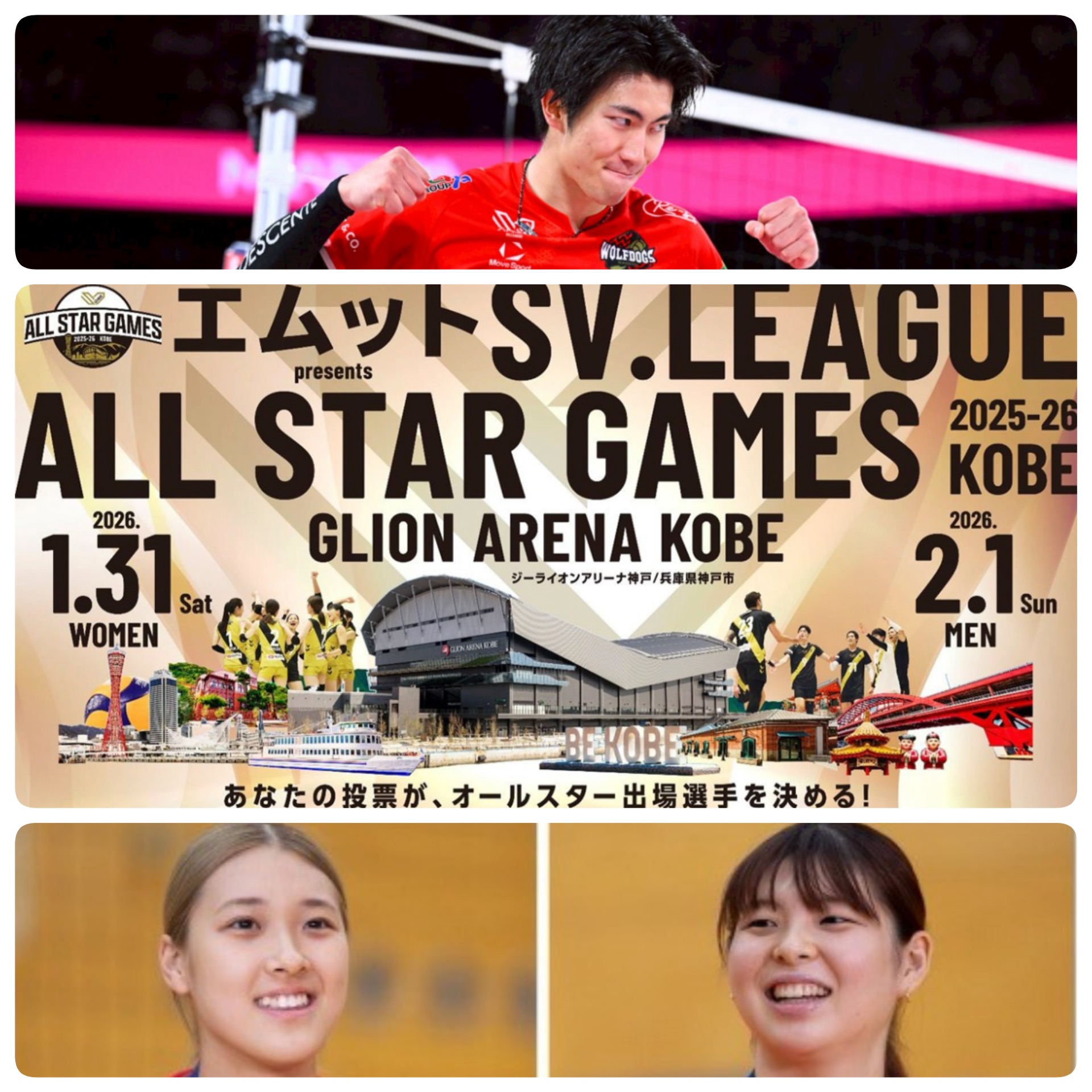 バレーボールプロリーグ、SVリーグのオールスターゲームが『エムットpresents SV.LEAGUE ALL STAR GAMES 2025-26 KOBE」として、来年1月31日と2月1日の2日間開催されます(^-^)v