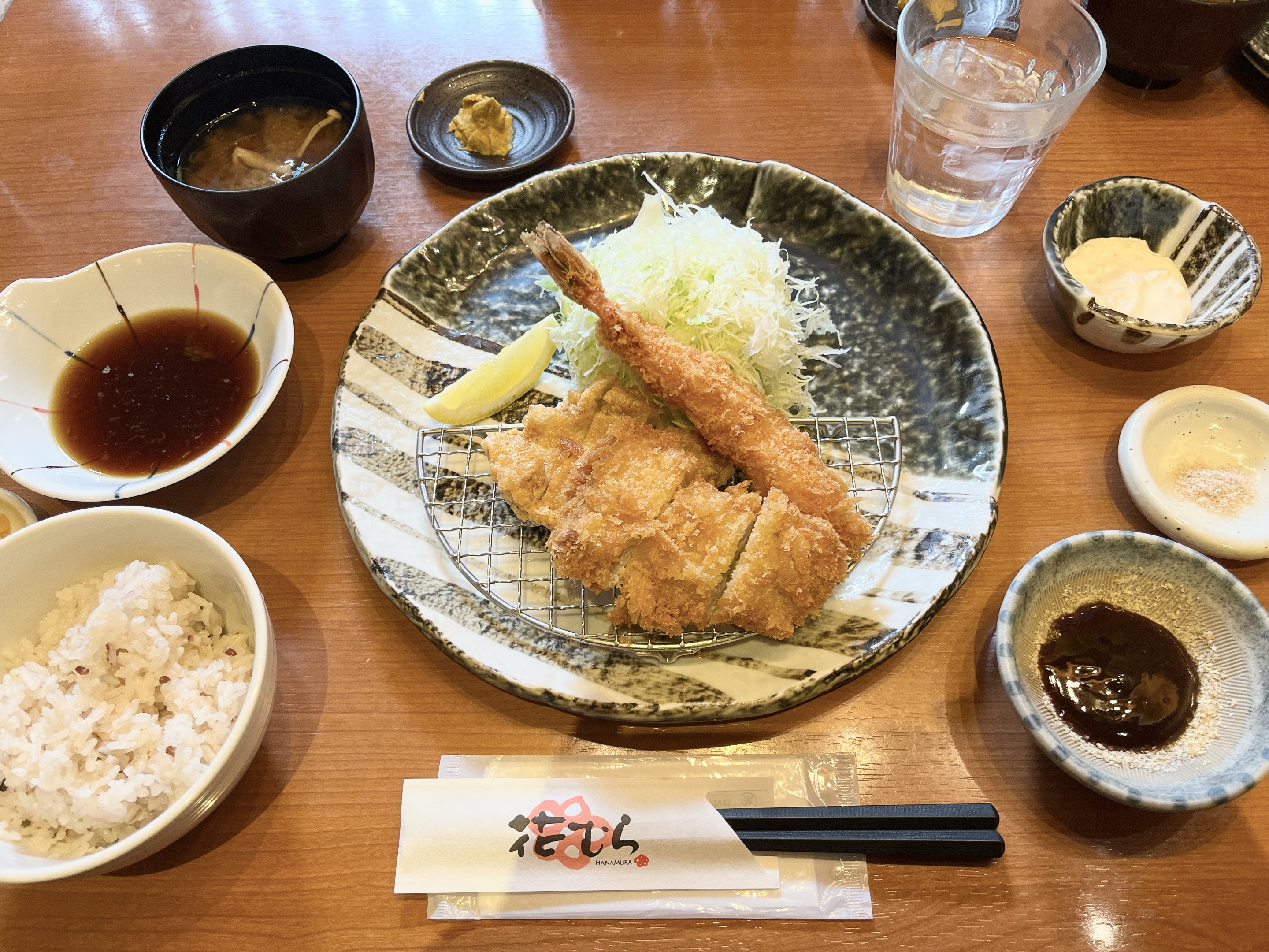 今年最後はちょっと豪勢に、三元豚のロースカツ、ロース天ぷら、&エビフライの月替わりセットにしてみましたーp(^_^)q