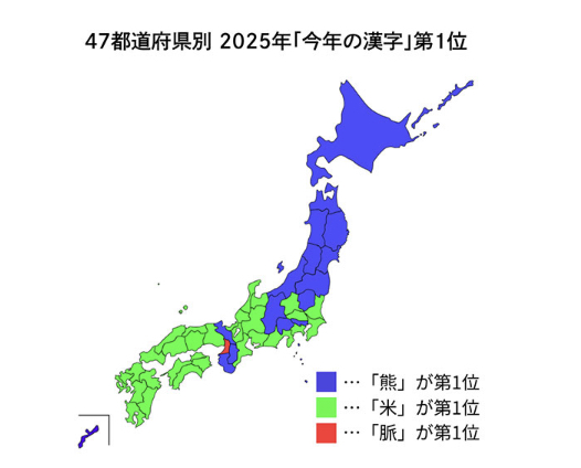 都道府県別では「熊」とともに「米」が多く、二分されていると思いきや大阪だけ「脈」でした。