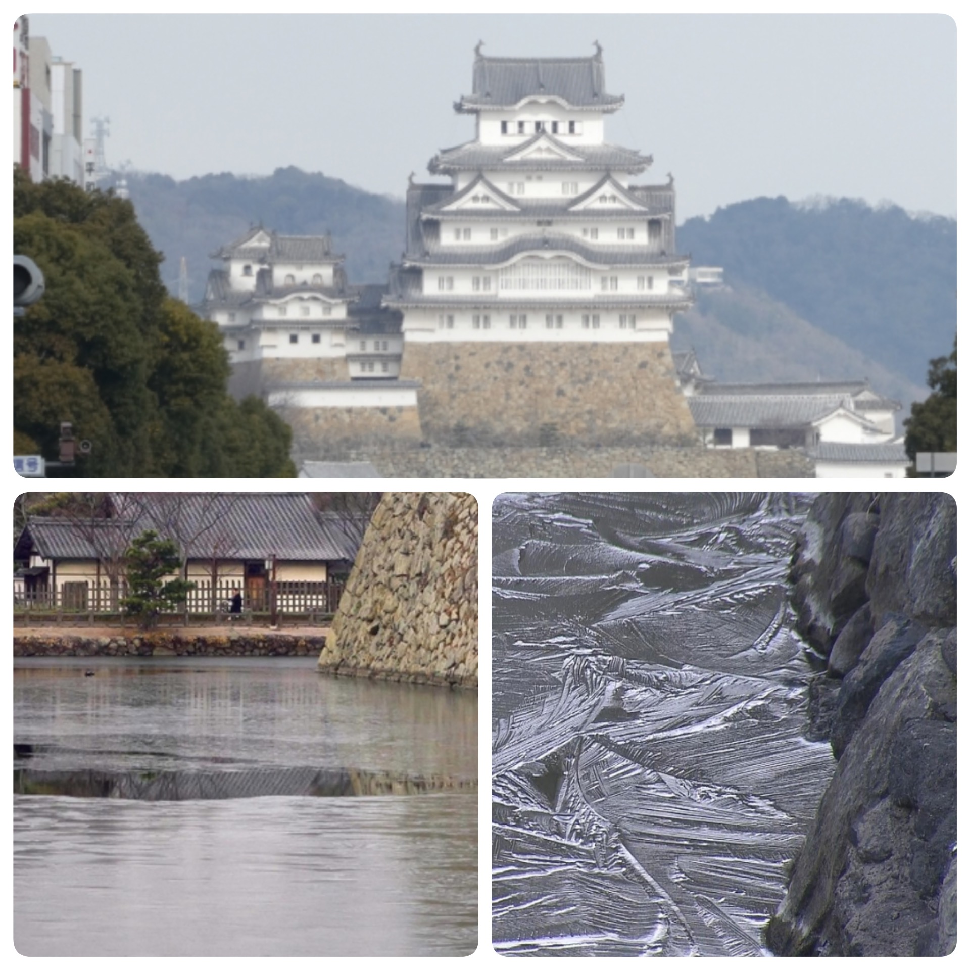 姫路城の堀では氷が毎日のように張っているそうですσ^_^;お城をぐるりと囲むお堀の水なんて、凍るなんてよっぽど寒いんだろうなと想像が付きますね(p_-)