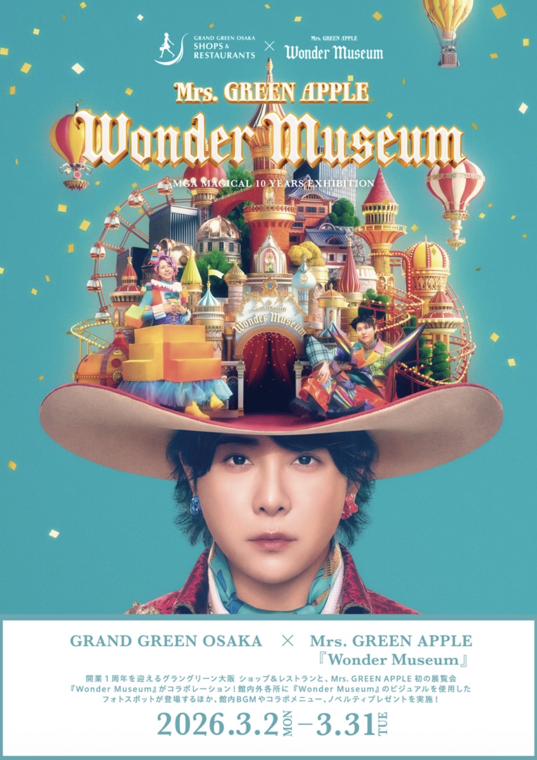 3月2日から、ミセス初の展覧会Mrs. GREEN APPLE『Wonder Museum』と、グラングリーン大阪のコラボ企画が、グラングリーン大阪で始まりました(^-^)