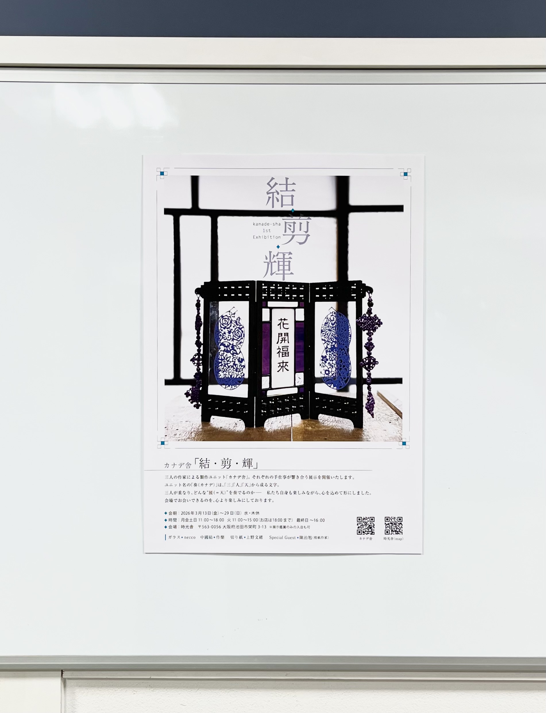 昨日の磯貝先生のブログでも紹介していますが、ユニット名『カナデ舎』による『結・剪・輝』というイベントです。