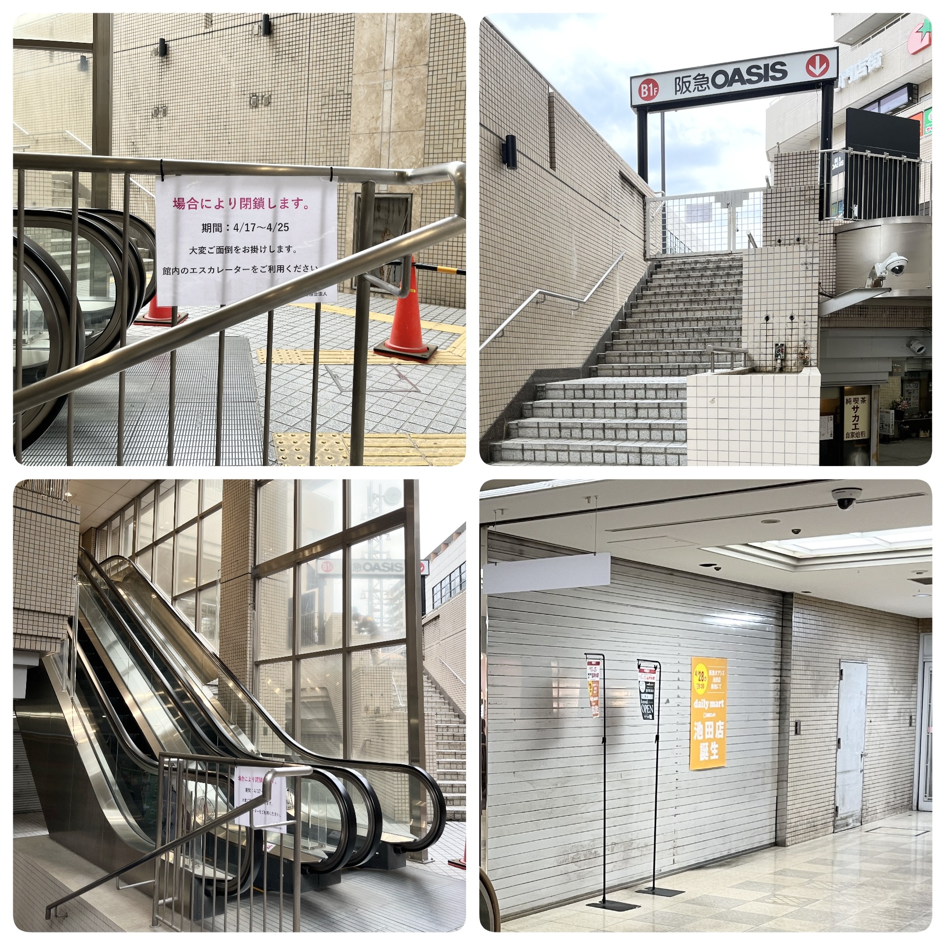 昨日、以前から予告されておりました阪急オアシスさんが移転され、地下一階のテナントは閉鎖されております。