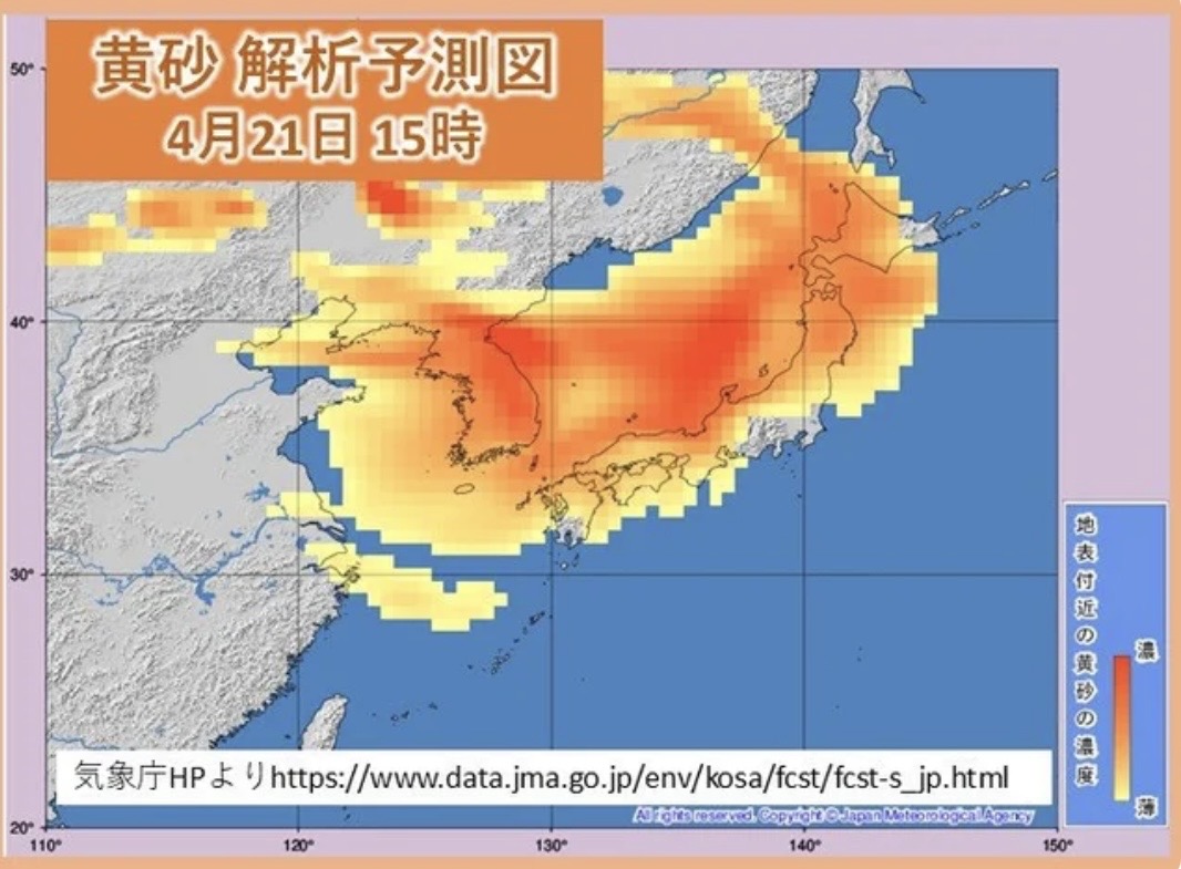 今日からこれまでで最大規模の黄砂が発生する予報となっております(p_-)