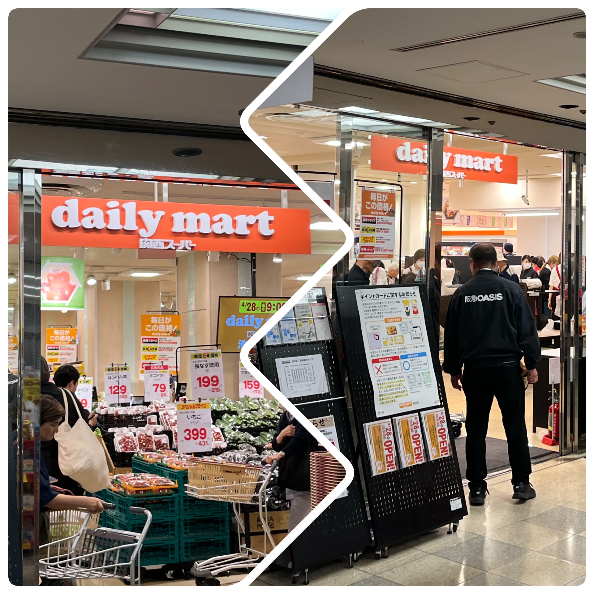 今日は、ナチュラルキュアと同じ階下のサンシティ池田のビル地下一階、阪急オアシスさんがあった所に関西スーパーがリニューアルオープンしました(^_−)−☆